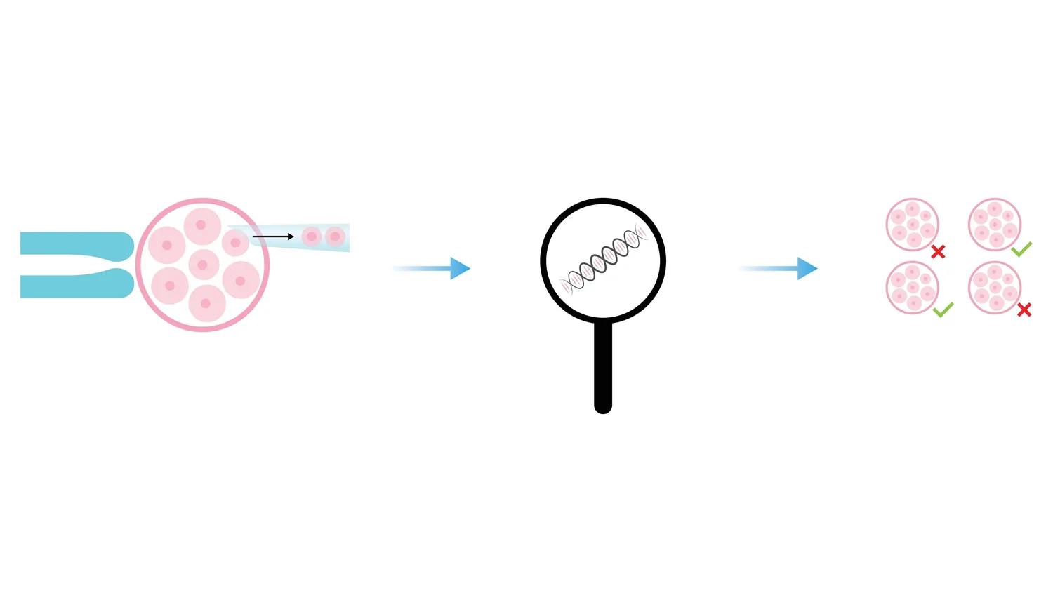 PGD מתבצע במספר שלבים: תחילה מבוצעת הפריה חוץ גופית, לרוב בשילוב הזרקת זרע לתוך ביצית (פרוצדורה הנקראת ICSI), שנועדה להבטיח שהעובר יכיל חומר גנטי ידוע בלבד. לאחר מכן, בשלב של 6-8 תאים (יום 3) או בשלב הבלסטוציסט (יום 5-6), נלקח תא או מספר תאים מהעובר לבדיקה גנטית. הבדיקה מתבצעת בשיטות מתקדמות בהתאם למוטציה ולמחלה הנבדקת. רק עוברים החופשיים מהמחלה הנבדקת יוחזרו לרחם.